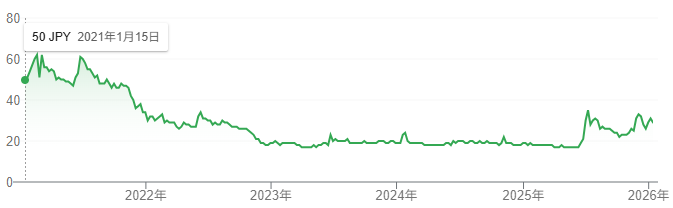 - 株価の推移:ここ2年で10円台→30円台に回復